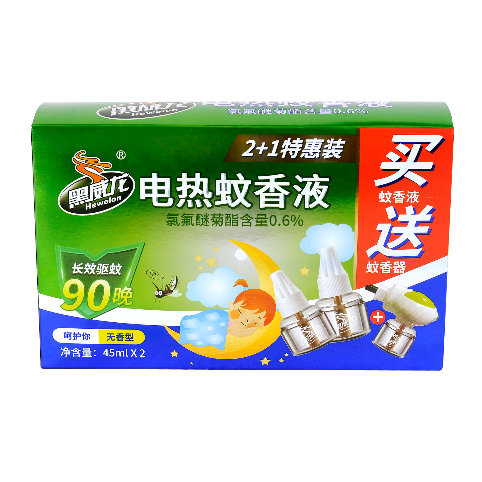 品名:黑威龍電熱蚊香液(二送一套裝)